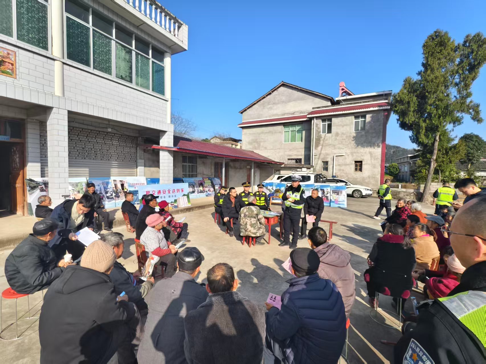 1月6日,苍溪县交通运输局会同省交通运输综合行政执法总队第三支队八大队、省公安厅交通管理总队高速公路二支队五大队、四川广南高速公路有限责任公司广元管理处、陵江镇人民政府等相关单位深入陵江镇九宝村开展2026年“一路四方”安全宣讲活动,通过普及法律法规、现场答疑、发放宣传单及坝坝会等方式重点宣讲了“禁止行人上高速公路”的相关法律知识及行人上高速公路的危害性。本次活动有效地提升了高速公路沿线群众的安全意识,并对行人易进入高速点位、涵洞水系不畅等问题进行会商研判。