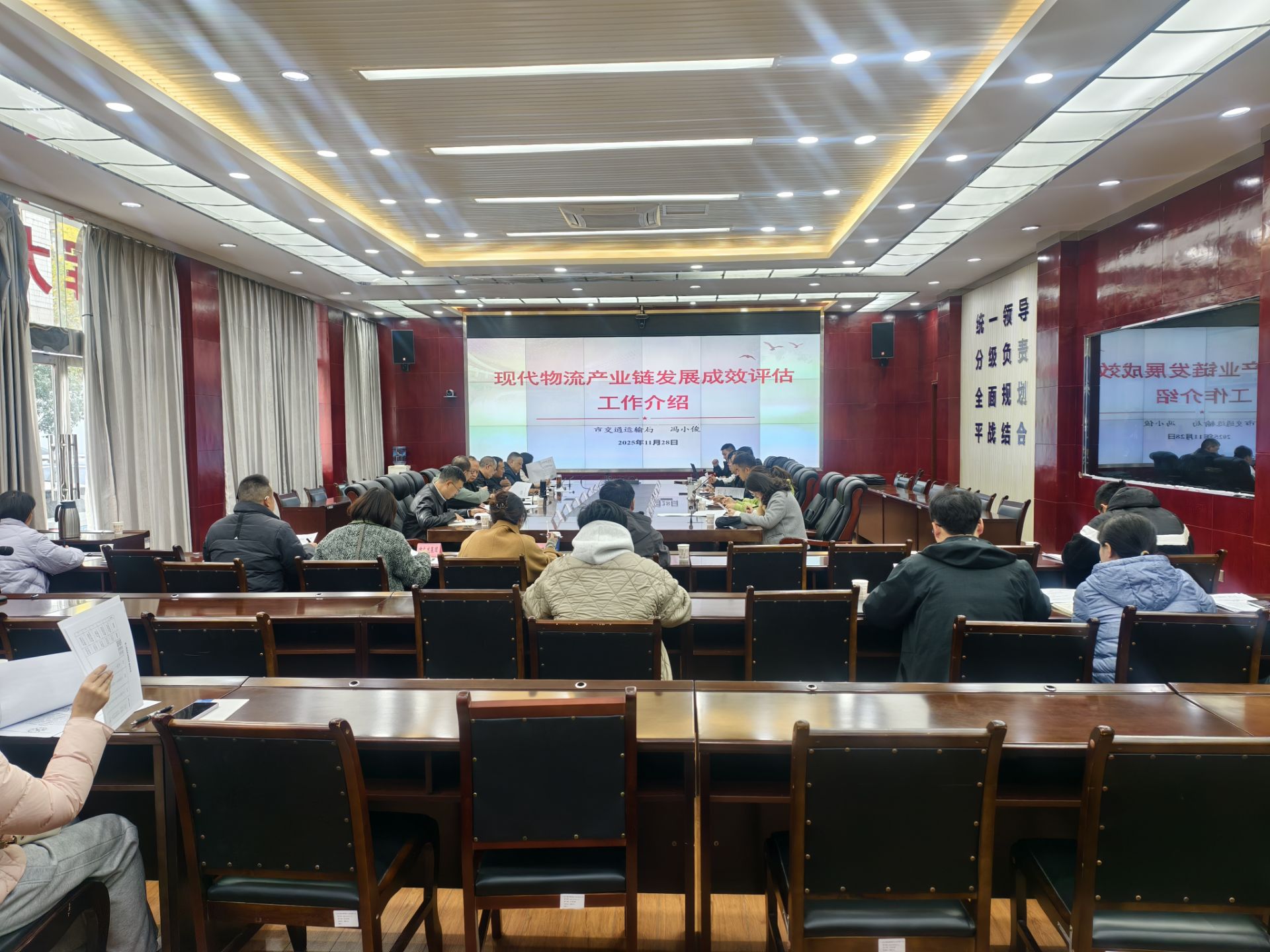 11月28日下午,市现代物流产业专班综合协调组牵头组织召开现代物流产业链发展成效评估工作专题培训会,旨在全面落实四川省现代物流产业链发展成效评估工作要求,确保全市2025年相关评估考核任务高质量完成。市交通运输局党组成员、副局长、市物流产业专班联络员陈林河主持会议并讲话。