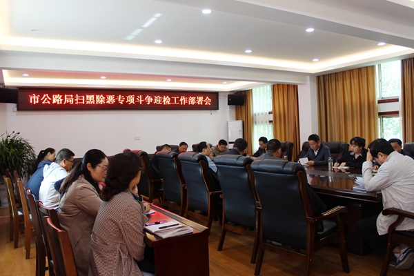 5月8日,市公路管理局扫黑除恶专项斗争迎检工作部署会召开,局党委书记、局长李辛主持会议。局领导班子成员、各科室负责人、各工程项目指挥部相关人员参加会议。
