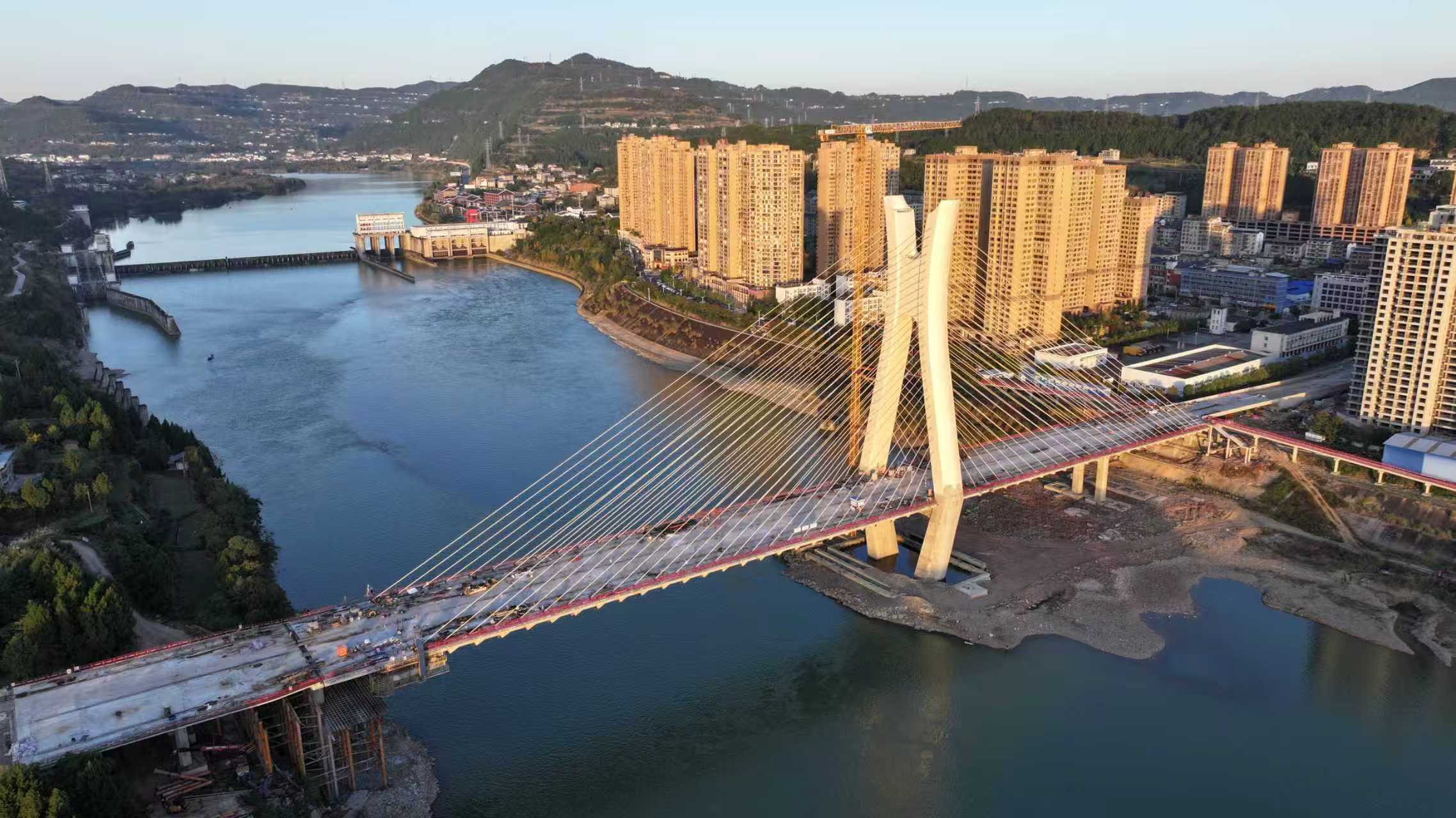 这座独塔双索面混凝土斜拉桥如巨龙卧波,441.4米的桥身横跨江面,180米主跨气势恢宏,31.5米宽的桥面预留出双向四车道空间,117米高的索塔直指天际,104根斜拉索如同琴弦般从“花瓶形”主塔斜拉而出,在蓝天映衬下划出优美的线条。37个混凝土箱梁标准节段层层衔接,在建设者的巧手之下,勾勒出贯通两岸的交通动脉。