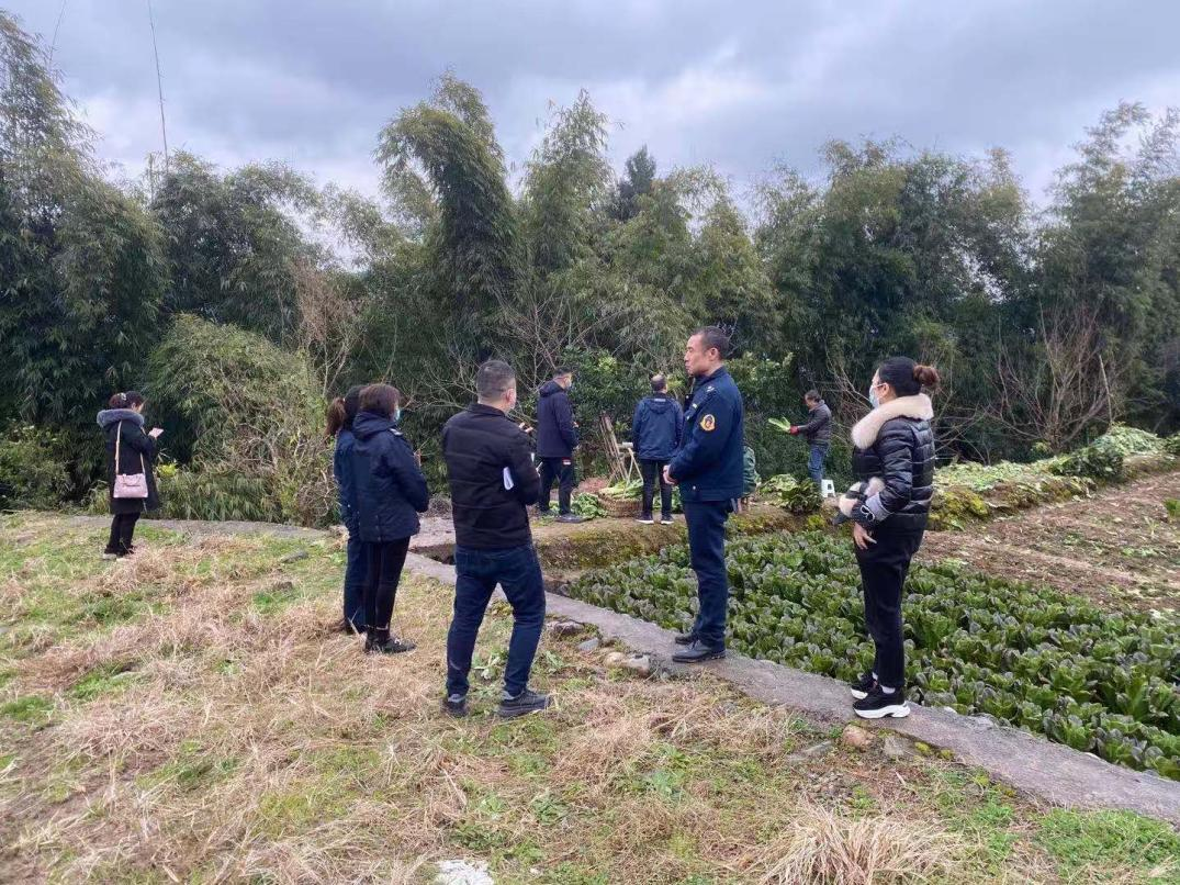 执法人员在白鹤社区开展禁燃烟花爆竹宣传工作