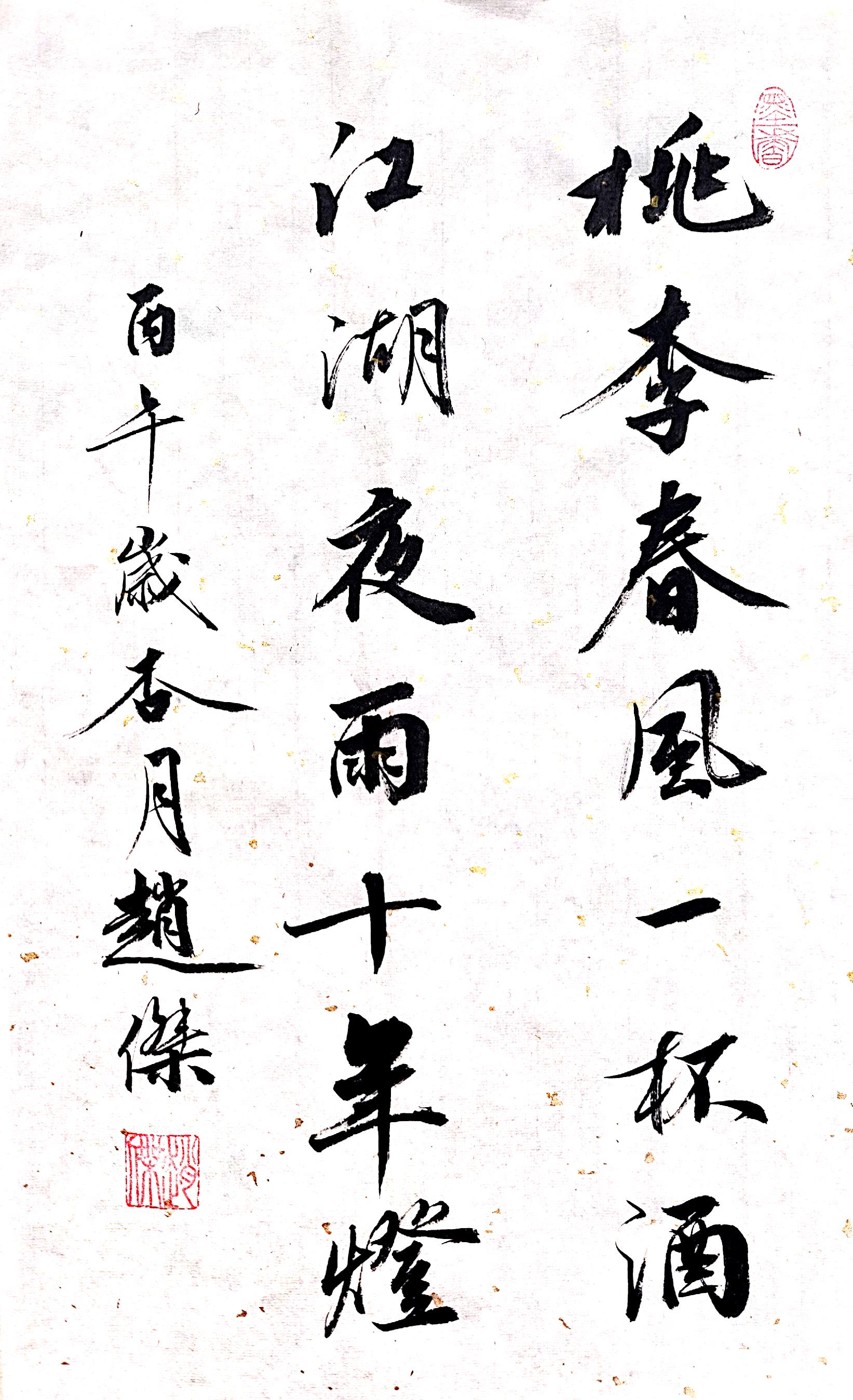 赵杰,男,汉族,1992年生,中共党员,现任广元市交通运输指挥中心副主任。他自幼酷爱书法艺术,将习字研帖视为重要的精神追求,工作之余常以笔墨修身养性,于楷书、行书、草书诸体皆有较深造诣。多年来的艺术实践,不仅使他在书法中涵养了审美意趣,更积淀出高雅的生活情操,充分展现了新时代交通人崇德尚艺、积极向上的精神风貌。
