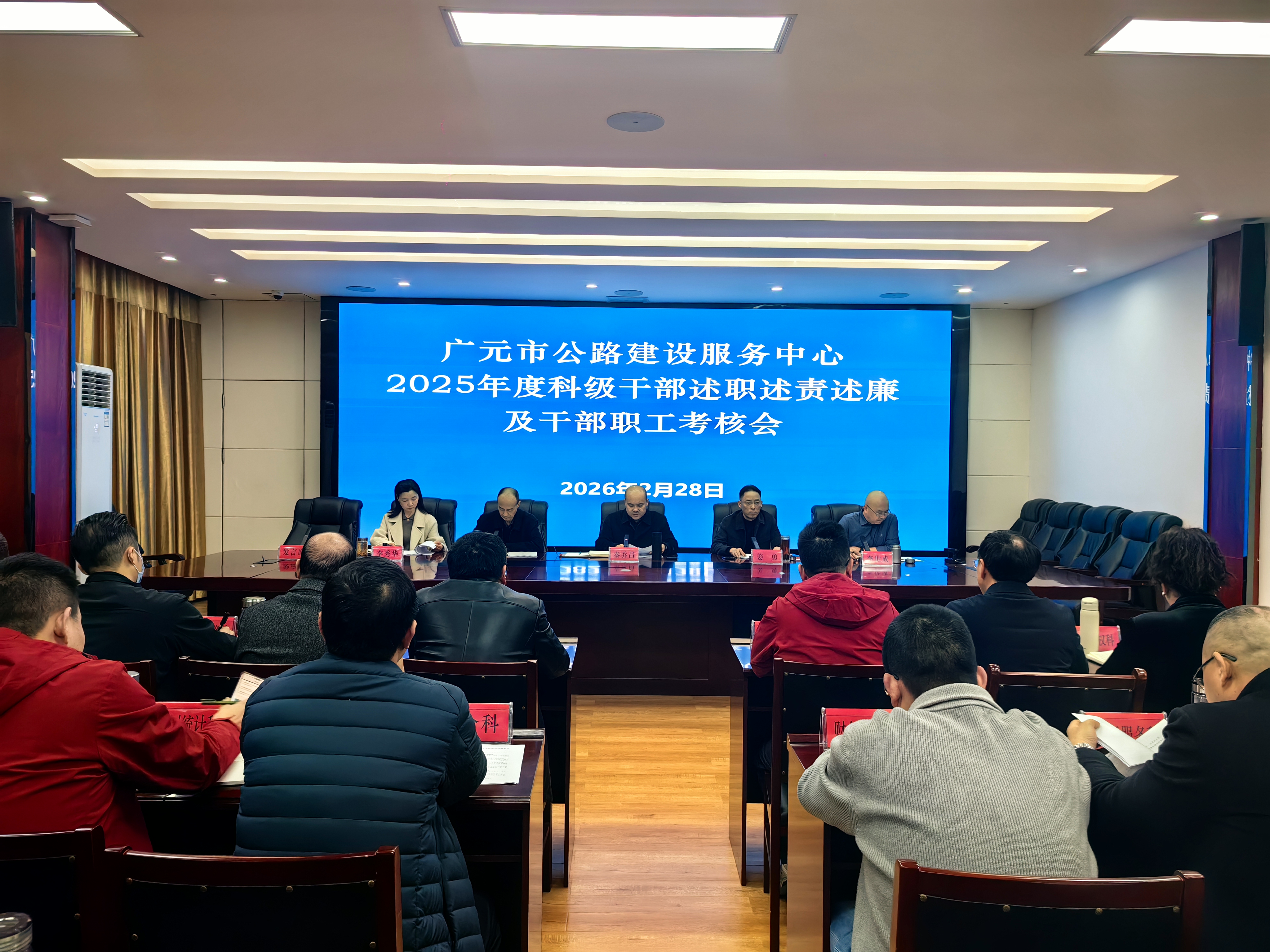 2月28日,市公路建设服务中心召开2025年度干部述职述责述廉暨年度考核工作会议,中心全体干部职工参加会议。