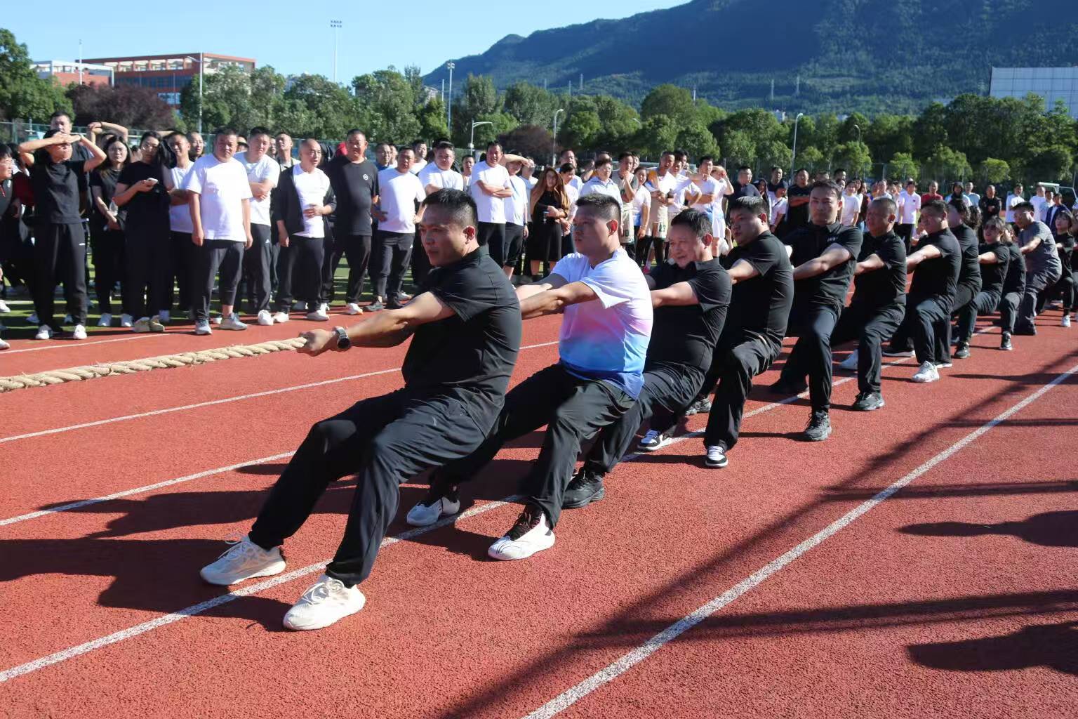 运动会为期3天,共设置篮球、拔河、迎面接力、跳大绳、毛毛虫快跑等5个团体项目和乒乓球、羽毛球、游泳等3个单人项目。竞技赛场上,各项目亮点纷呈。其中,拔河比赛竞争尤为激烈,中心拔河队员们紧握长绳、脚蹬土地,憋足干劲奋力后拉,整齐的号子声与场边加油声交织共振,每一寸拉扯都尽显团结的力量。篮球场上,队员们默契配合、攻防兼备,传球、突破、投篮等动作行云流水,用汗水诠释着拼搏精神;趣味运动项目里,大家放下竞技的紧张,在协作中感受快乐。