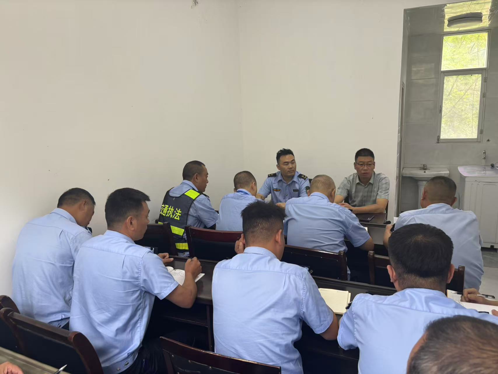 大队长赵小伟细致查看了称重检测设备的运行状况、超限超载车辆的处理流程,并与一线执法人员进行了深入交流,详细了解了检测站24小时值班制度、卸载场地的管理等情况。检测站负责人就近期的工作进展情况、工作中存在的困难和下一步工作计划进行了汇报,并针对存在的困难和问题提出推动落实、解决的指导意见。
