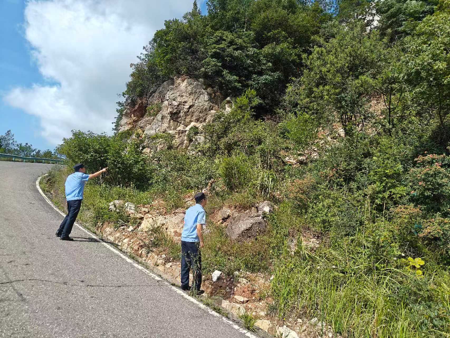 坚守路域环境治理一线,周密排查除隐患。聚焦高温及强降雨天气,执法人员加大辖区国省干线巡查力度,重点排查长大下坡、急弯陡坡、临水临崖、桥梁隧道等重点路段的风险隐患。及时清理整治公路打场晒粮、摆摊设点、堆放杂物等行为,依法拆除非公路标志标牌及违法建筑物,全力消除安全隐患,保障高温强降雨天气公路安全畅通。